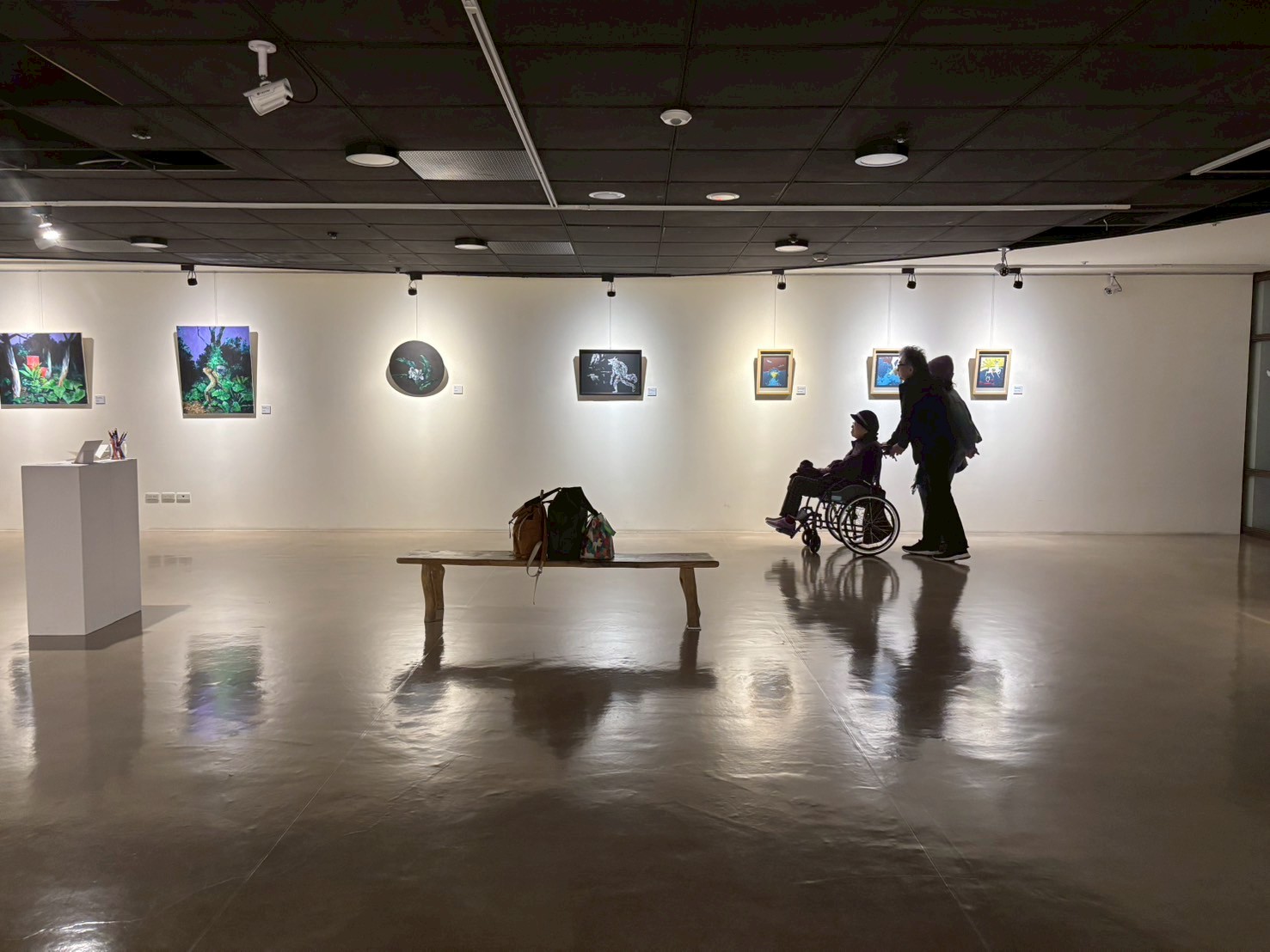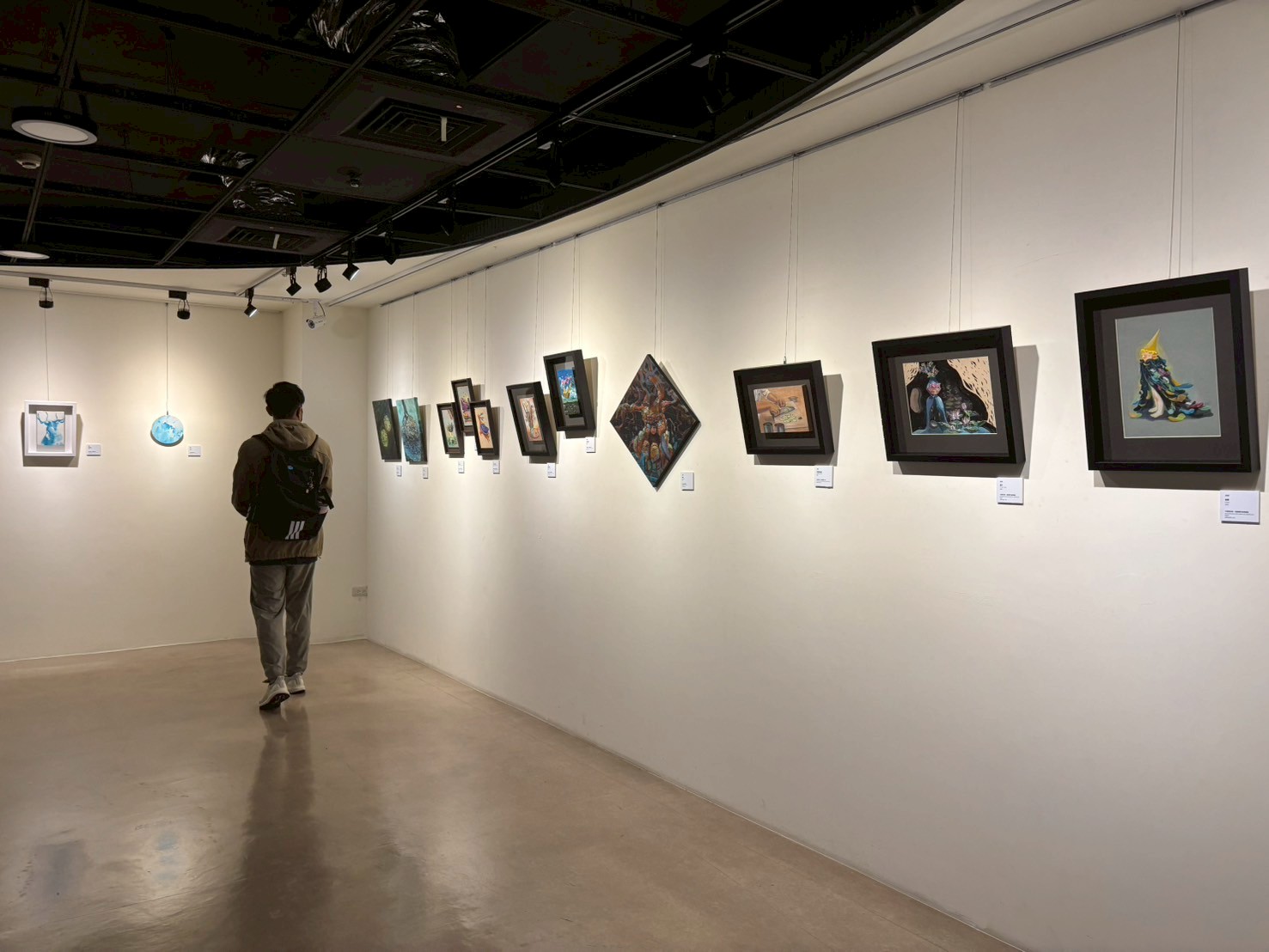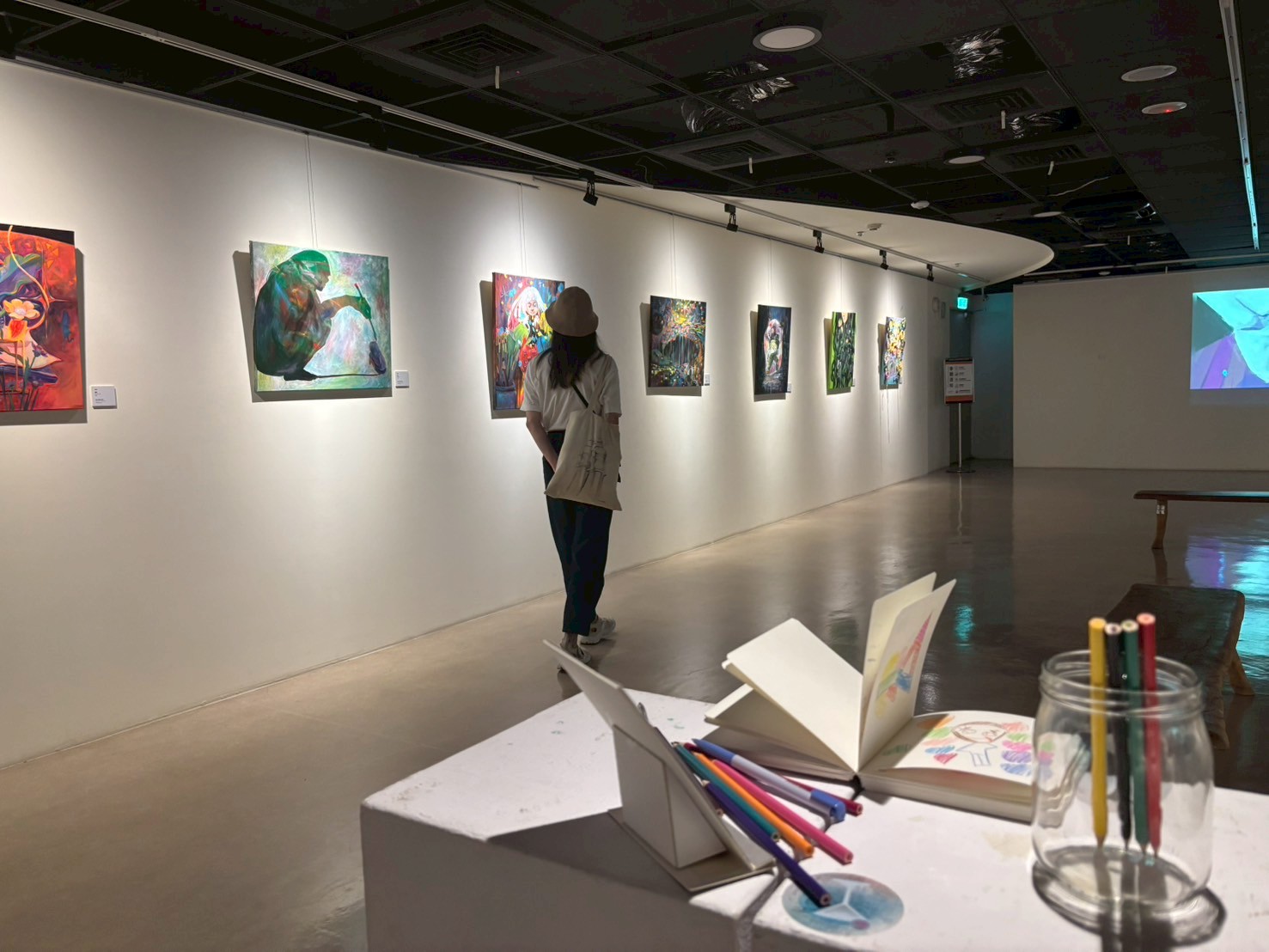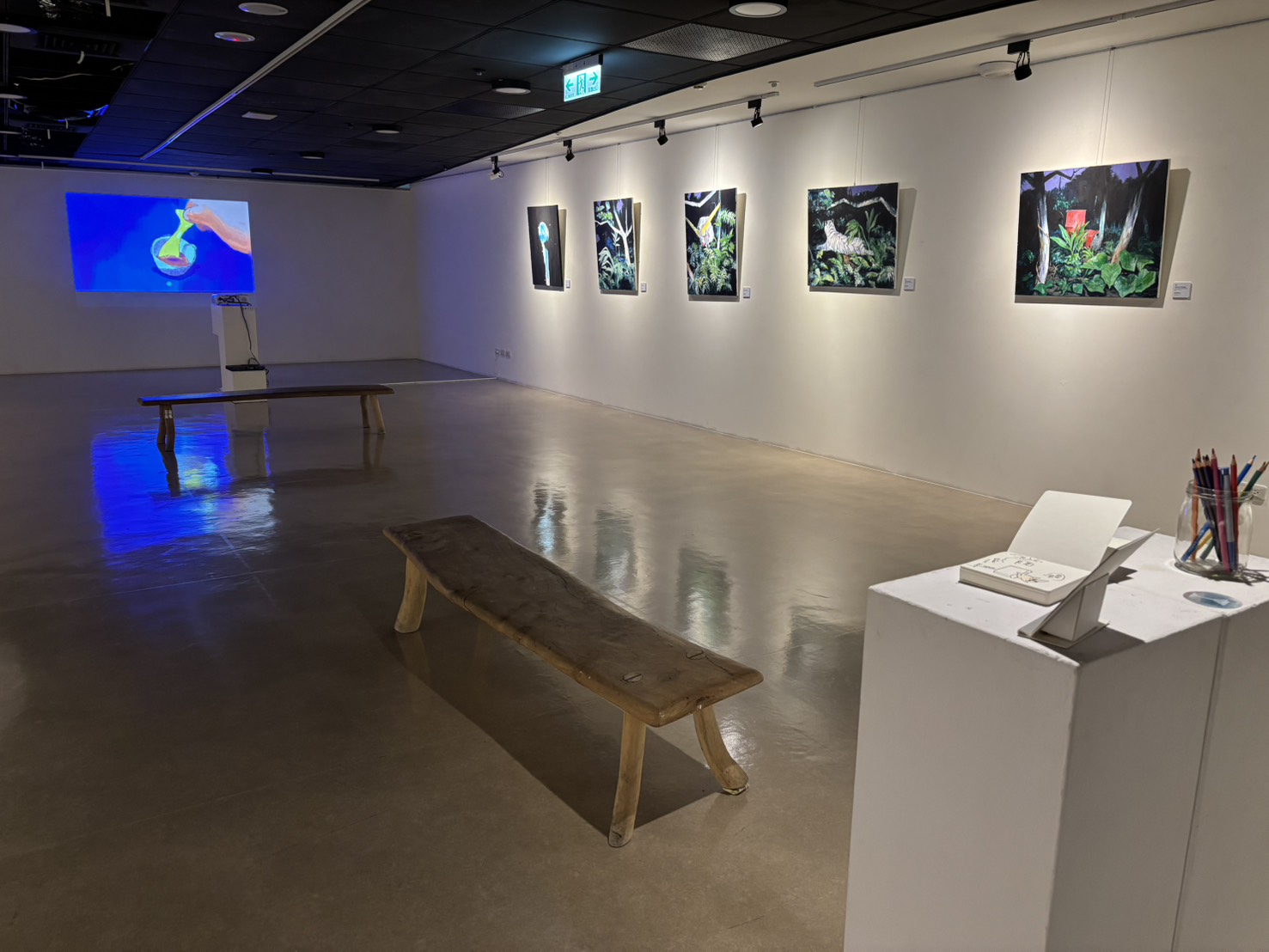 此次展覽除了觀看兩位創作者各自的創作脈絡,也可從相同創作媒材中看到各異其趣的手法與視覺語言。兩人共同創作的部分則可以看到兩位創作者面對面對話同時動筆畫下的作品。